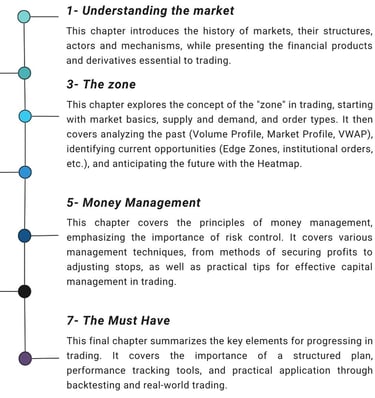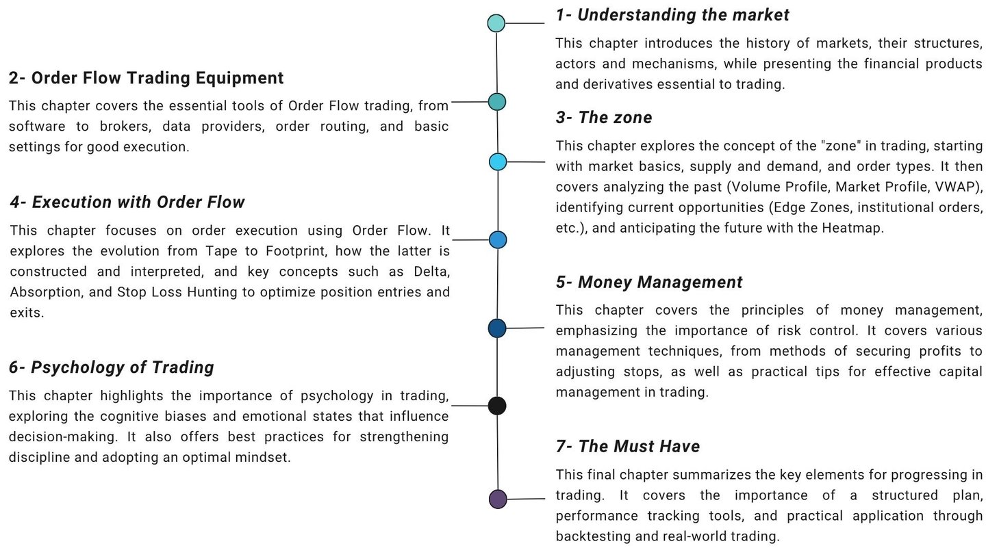 Our Order Flow trading program is organized into seven chapters available in group and individual formats.