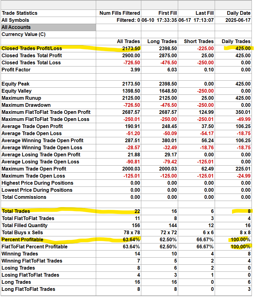 Semaine lancée avec 8 trades, 8 gagnants. 🔹 PnL du jour : +425 $ 🔹 Profit Factor long : 6.03 🔹 Taux de réussite : 100 % Chez HIT Capital, la performance n’est jamais décorrélée du risque. C’est la gestion qui fait la différence, pas le volume de trades.
